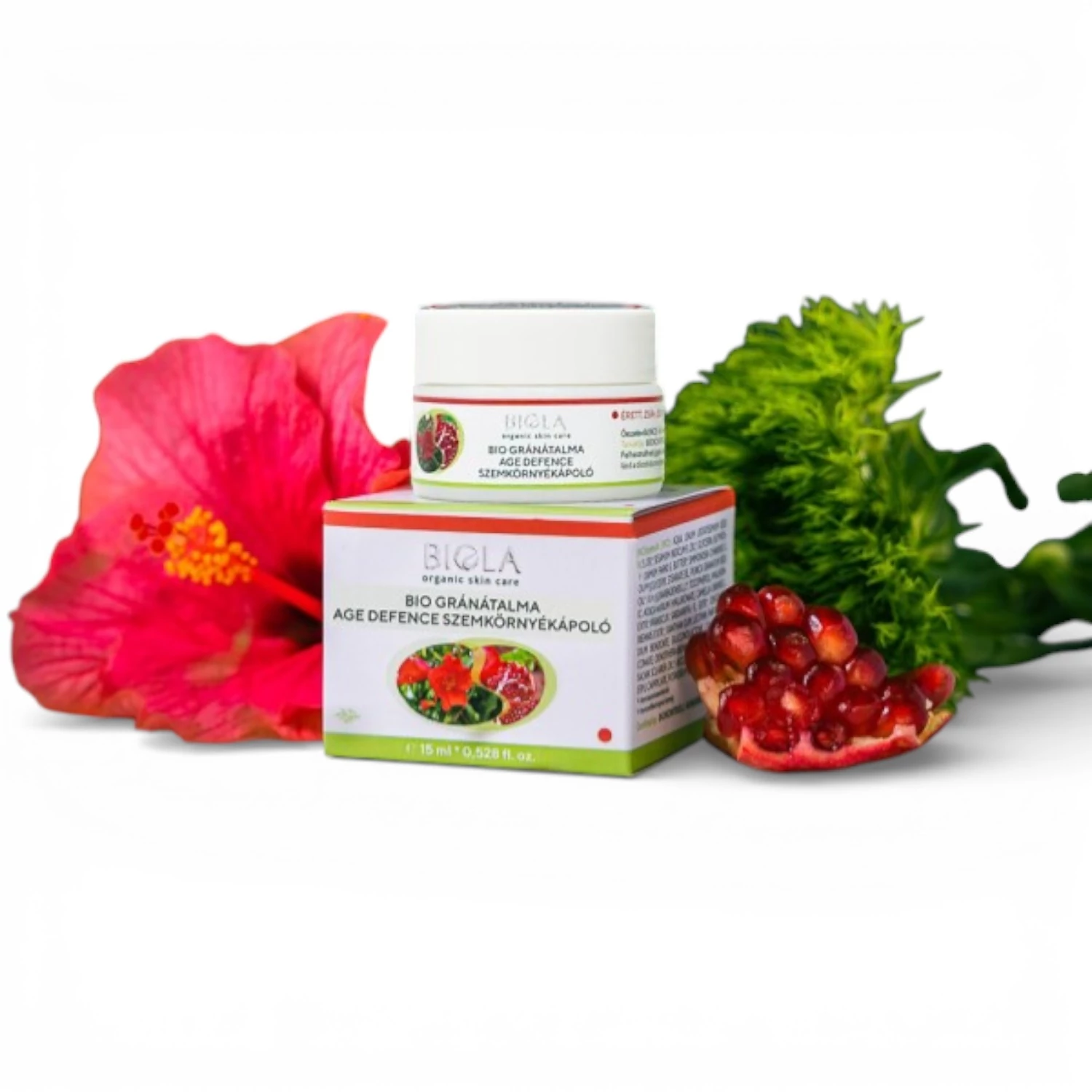 A BIO Gránátalma Age Defence szemkörnyékápoló célzott támogatást nyújt a természetes bőröregedés jeleivel szemben. Rendszeres használata segít mérsékelni a finom vonalak és kisebb ráncok mélységét, valamint hozzájárulhat az újabb barázdák kialakulásának lassításához. Intenzíven hidratálja és táplálja az érzékeny szemkörnyéket, támogatva a rugalmasabb, üdébb bőrállapotot.