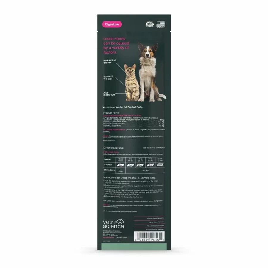 Vetri Science Laboratories Fast Balance G.I. A paszta tartalmazza az élesztő sejtfalából származó speciális mannaszoligoszacharid (MOS) nevű élesztőkivonatot. Tartalmaz továbbá probiotikumokat több törzsben, gombás eredetű enzimekben és B-vitaminokban, amelyek együtt dolgoznak az béltraktusban. A Fast Balance ajánlott idegen eredetű táplálék miatti bélrendelleneségnél, az stressz eredetű vagy ételérzékenység miatt kialakul emésztési problémák gyors normalizálása és az emésztéstámogatásra szoruló idősebb háziállatok számára.