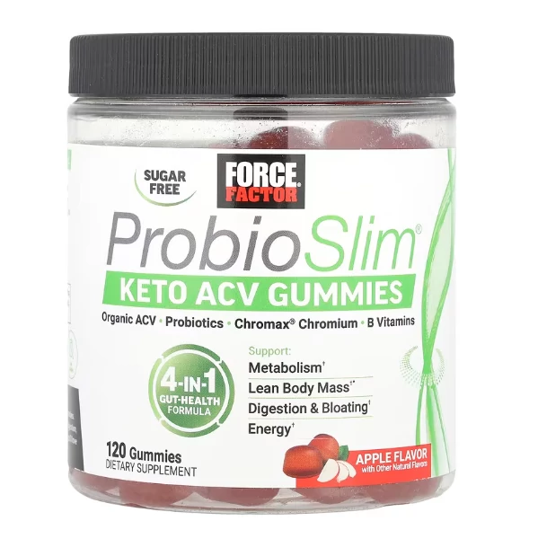 A Force Factor ProbioSlim Keto ACV Gummies egy ízletes, alma ízű gumicukor étrend-kiegészítő, amely organikus almaecetet (ACV), probiotikumot és egyéb hasznos tápanyagokat kombinál egy praktikus napi adagban. A formula úgy lett kifejlesztve, hogy támogassa az emésztést, anyagcserét és bélflóra egyensúlyt, mindezt kényelmes, finom formában, amely könnyen beilleszthető a napi wellness rutinba.