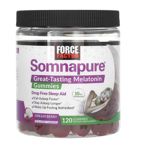 A Force Factor Somnapure Melatonin gumicukor egy prémium minőségű étrend-kiegészítő, amely gumicukor formában, Dream Berry (álombogyó) ízben kínál 5 mg melatonint gumicukronként. A melatonin egy természetes, a szervezetben előforduló hormon, amely kulcsszerepet játszik az alvás-ébrenlét ciklus szabályozásában. A gumicukor változat különösen ideális azok számára, akik nem szeretnek kapszulát bevenni, vagy egyszerűbb, ízletesebb megoldást keresnek az esti kikapcsolódáshoz és elalváshoz.