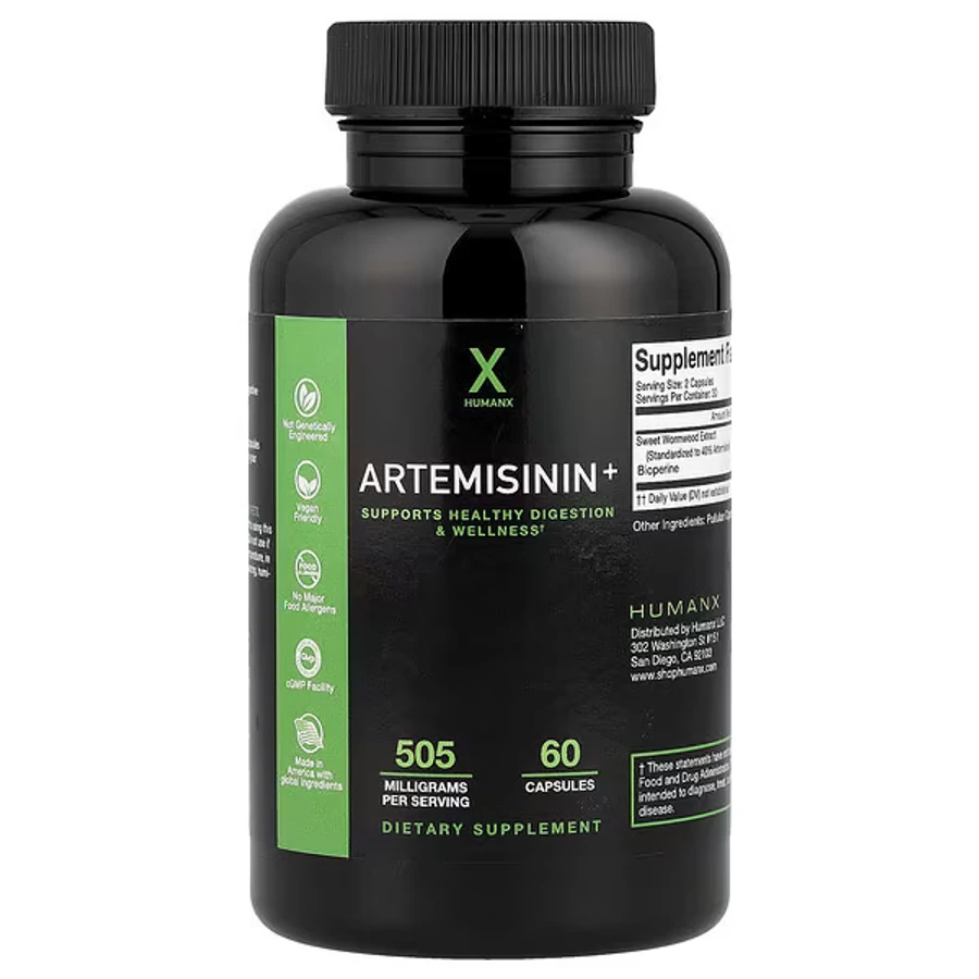A Humanx Artemisinin+ egy gondosan összeállított, növényi alapú étrend-kiegészítő, amely édes üröm (Artemisia annua) kivonatot tartalmaz, 40%-os artemisinin-tartalomra standardizálva. Az artemisinin a hagyományos növényhasználatban és modern kutatásokban is a bélrendszer egyensúlyának és az általános emésztési jóllétnek a támogatásához kapcsolódik.