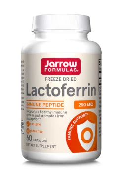 A Jarrow Formulas Lactoferrin egy kiváló minőségű, fagyasztva szárított (freeze-dried) tejsavófehérje-komplex, amely az anyatejben is megtalálható laktotranszferrinből származik. Ez a természetes immunvédő glikoprotein segíti a szervezet védekezőképességét és elősegíti a vas hatékony felszívódását.