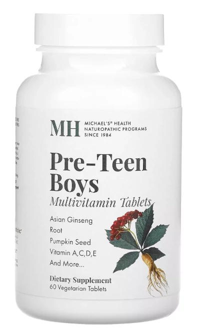 A Michael's Health Pre-Teen Boys Multivitamin egy speciálisan kiskamasz (pre-teen) korú fiúknak készült, természetes összetevőkből álló étrend-kiegészítő. Kiegyensúlyozott tápanyagtartalma segíti a növekedést, az immunrendszer erősítését, a koncentrációt és a hormonális egyensúlyt – a korosztály testi-lelki igényeihez igazítva.