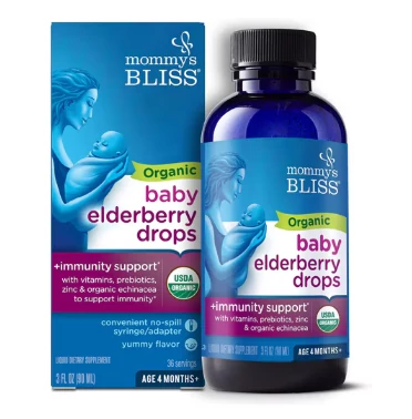 A Mommy’s Bliss Baby Organic Elderberry Drops egy organikus, természetes összetevőjű immunerősítő, amelyet kifejezetten 4 hónapos kortól ajánlott babák számára fejlesztettek ki. A finom ízű bodzabogyó-kivonatot tartalmazó formula C- és D-vitaminnal, cinkkel, echinaceával és prebiotikummal gazdagított, hogy természetes módon támogassa a baba immunrendszerét és ellenálló képességét.