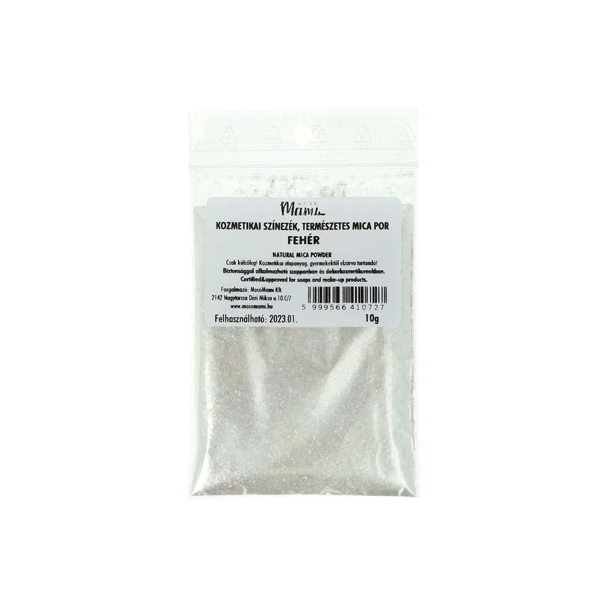 A fehér csillámpor egy ásványi eredetű kozmetikai pigment, amely kiválóan ellenáll a pH-érték ingadozásnak. Mivel zsírban jól oldódik, ideális színezőanyag szappanokhoz, krémekhez és dekorkozmetikumokhoz.