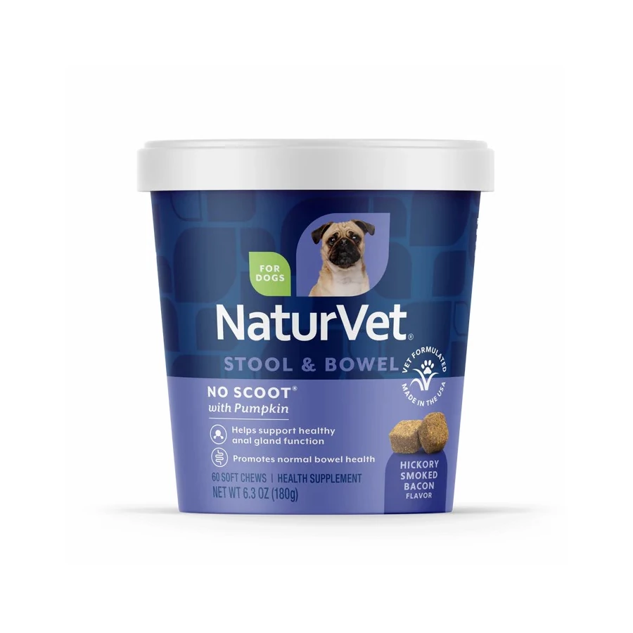 NaturVet No Scoot széklet- és bélrendszeri támogatás sütőtökkel, kutyáknak, füstölt bacon ízben, 60 puha rágófalat