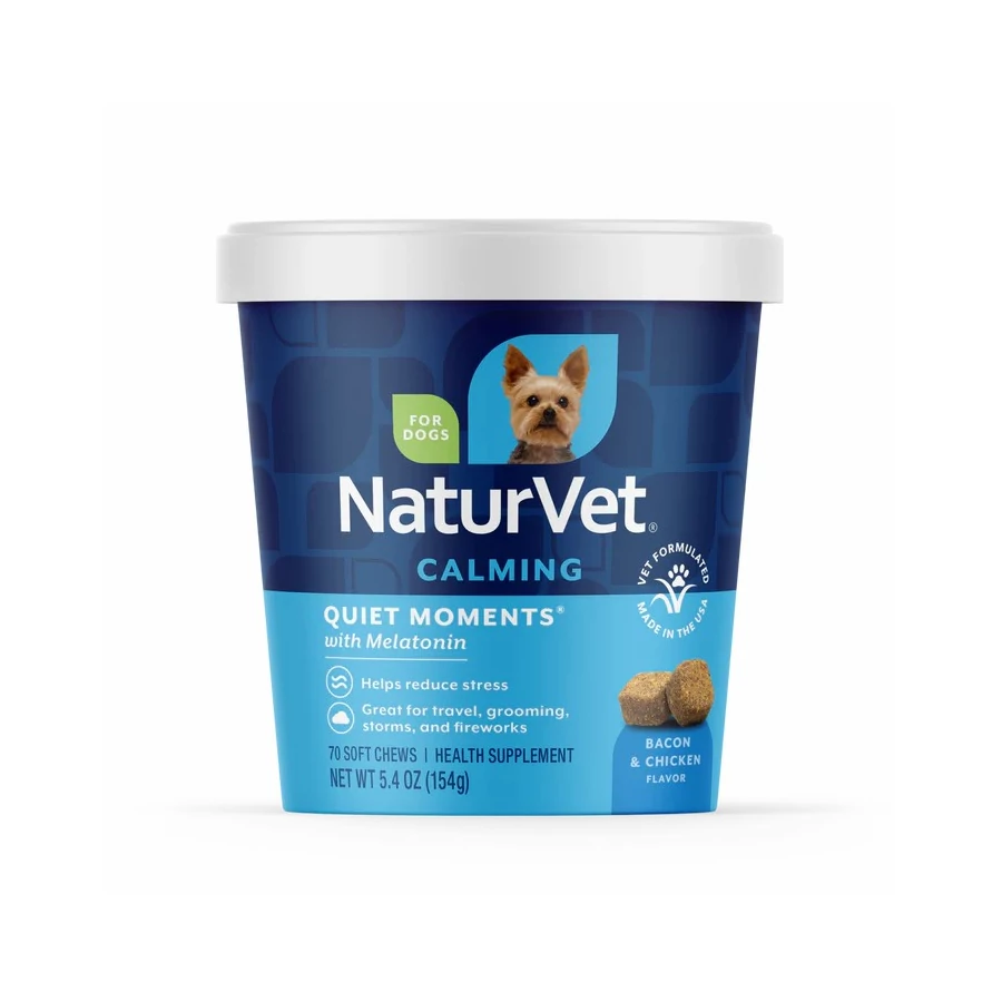 A Quiet Moments® Calming Soft Chews gyengéd, mégis hatékony támogatást nyújt a kutyáknak stressz, szorongás és nyugtalanság esetén, legyen szó utazásról, viharról, tűzijátékról vagy állatorvosi látogatásról. A melatonin, a nyugtató gyógynövények és aminosavak kombinációja segít, hogy kutyája biztonságban, ellazultan és nyugodtan érezze magát.