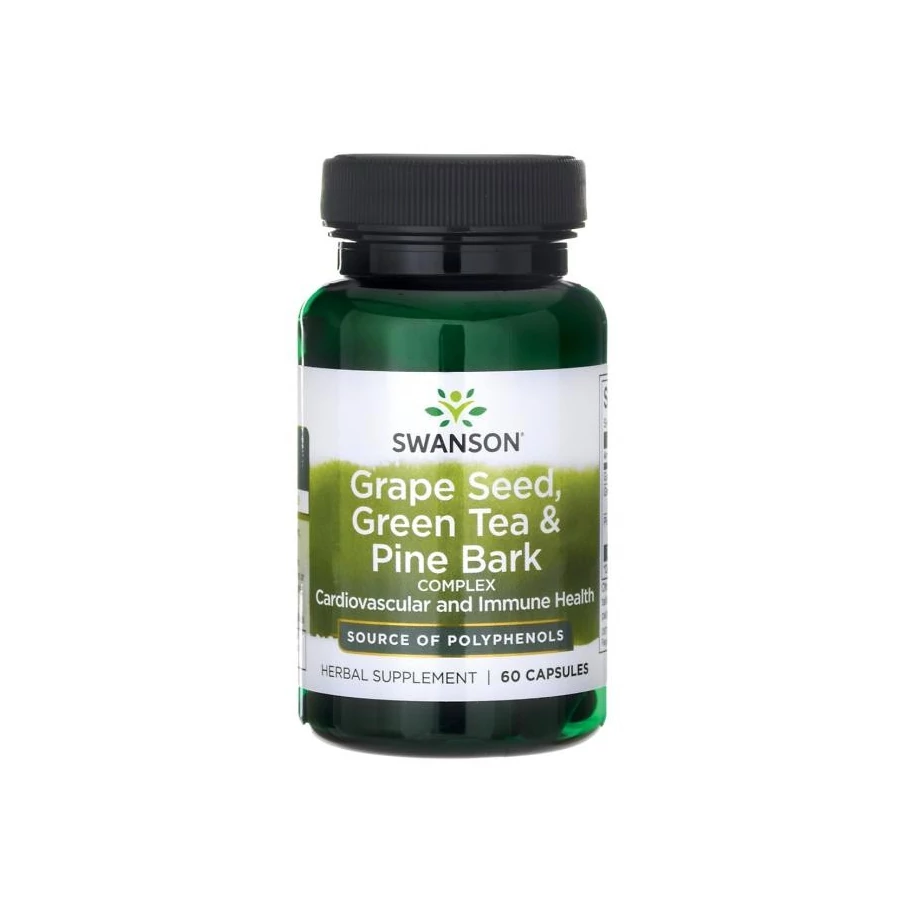 A Swanson Grape Seed, Green Tea & Pine Bark egy költséghatékony, mégis rendkívül erőteljes formula, amely a zöld tea polifenoljait ötvözi a szőlőmagban és a fenyőkéregben található oligomerikus proantocianidinekkel. Ez a szinergikus összetétel széles körű antioxidáns védelmet nyújthat a szervezet számára.