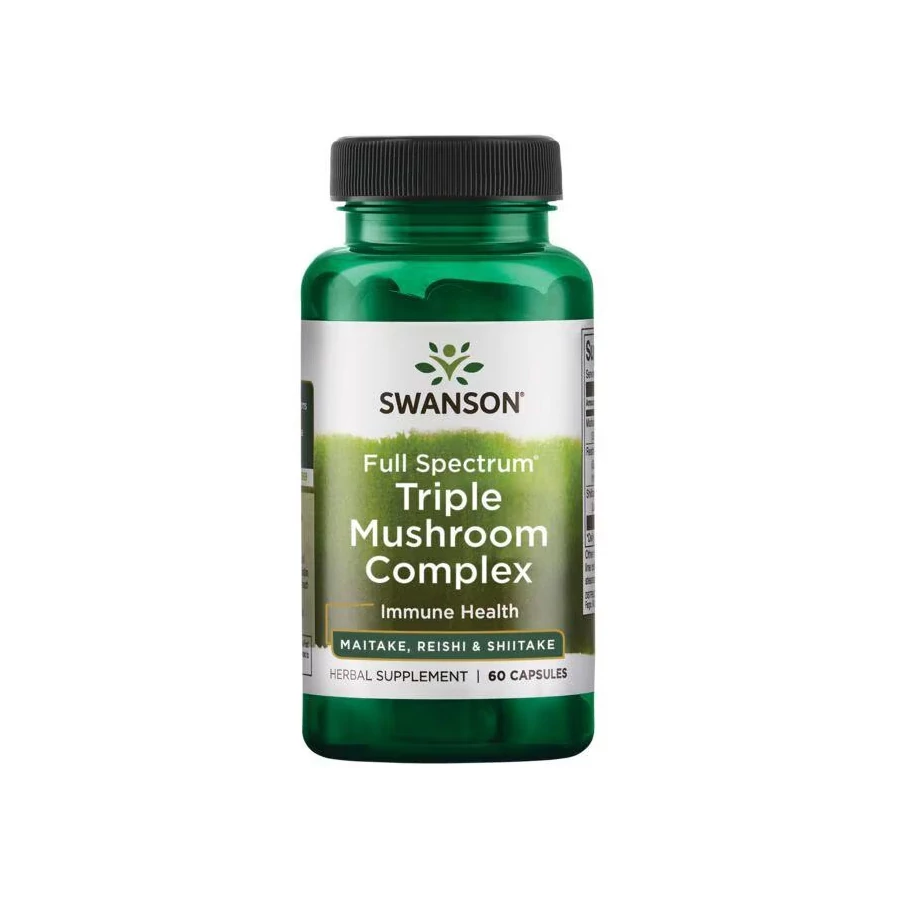 A Swanson Triple Mushroom Complex a shiitake, reishi és maitake gombák teljes értékű keverékével támogatja az immunrendszert, az energiaszintet és a mindennapi stresszel szembeni természetes megküzdést. A gombák béta-glükánjai, vitaminjai és növényi hatóanyagai hozzájárulnak a bélflóra egyensúlyához és az általános vitalitáshoz.
