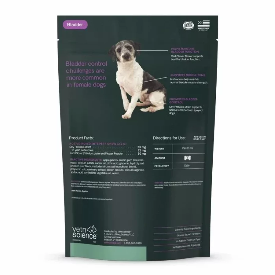 A VETRI húgyhólyag támogató jutalomfalat olyan fitoösztrogének kombinációja, amelyek együttesen támogatják a húgyhólyag normál működését és szabályozását ivartalanított és idős kutyáknál. Ez a termék szójafehérje-kivonatot tartalmaz, amely az izoflavonok forrása. Az izoflavonok fitoösztrogének (növényi alapú hormonok), amelyek elősegítik a hólyag normál izomtónusának fenntartását az ivartalanítás után vagy az öregedési folyamat során. A vörös lóhere virágport a leggazdagabb izoflavon-forrásoknak tekintik.